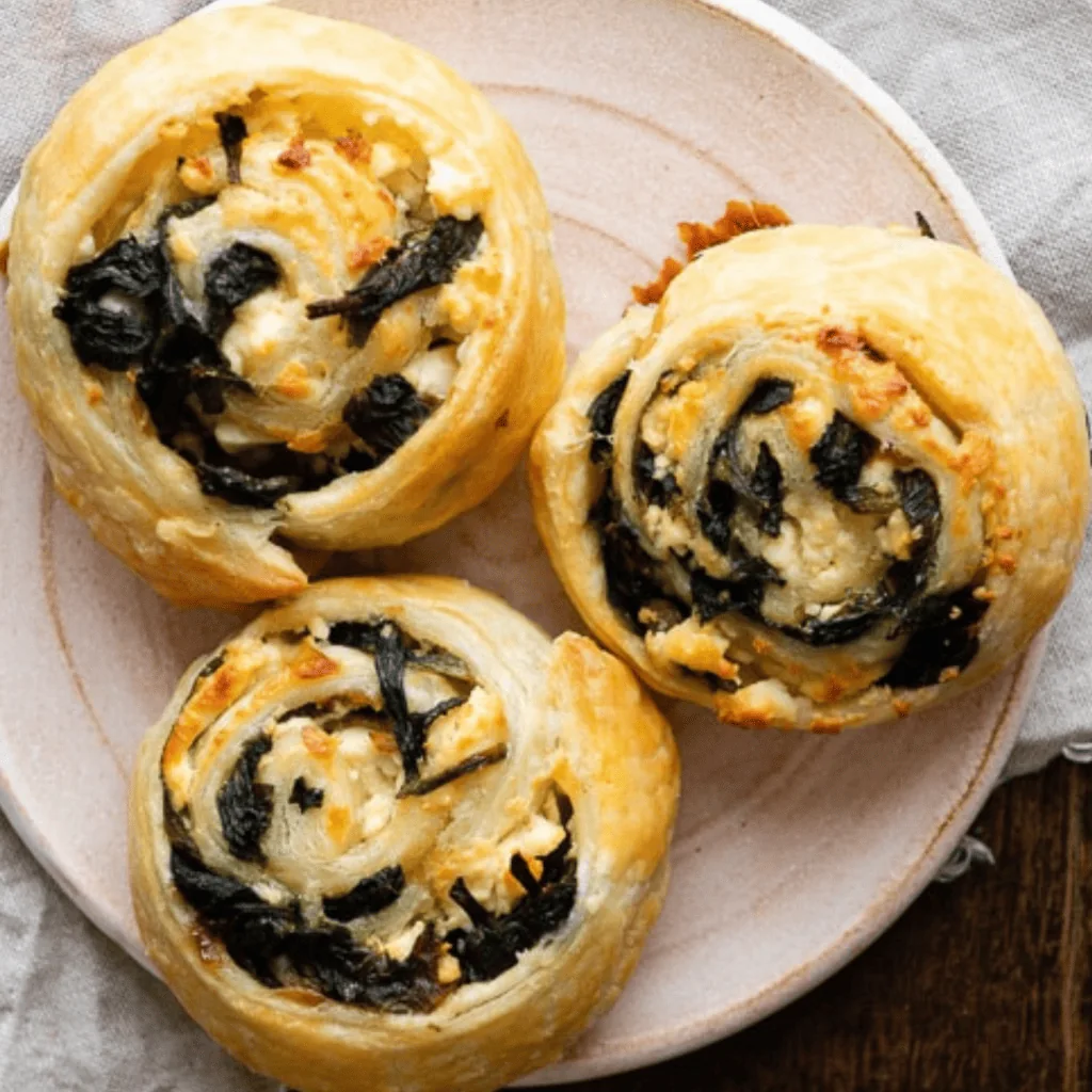 Zum Rezept: Spinat Feta Blätterteig Schnecken