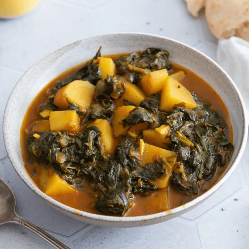 • Vegan: Aloo Palak ist von Natur aus vegan und sogar glutenfrei. Du kannst es je nach Vorliebe mit Naan oder Reis servieren.