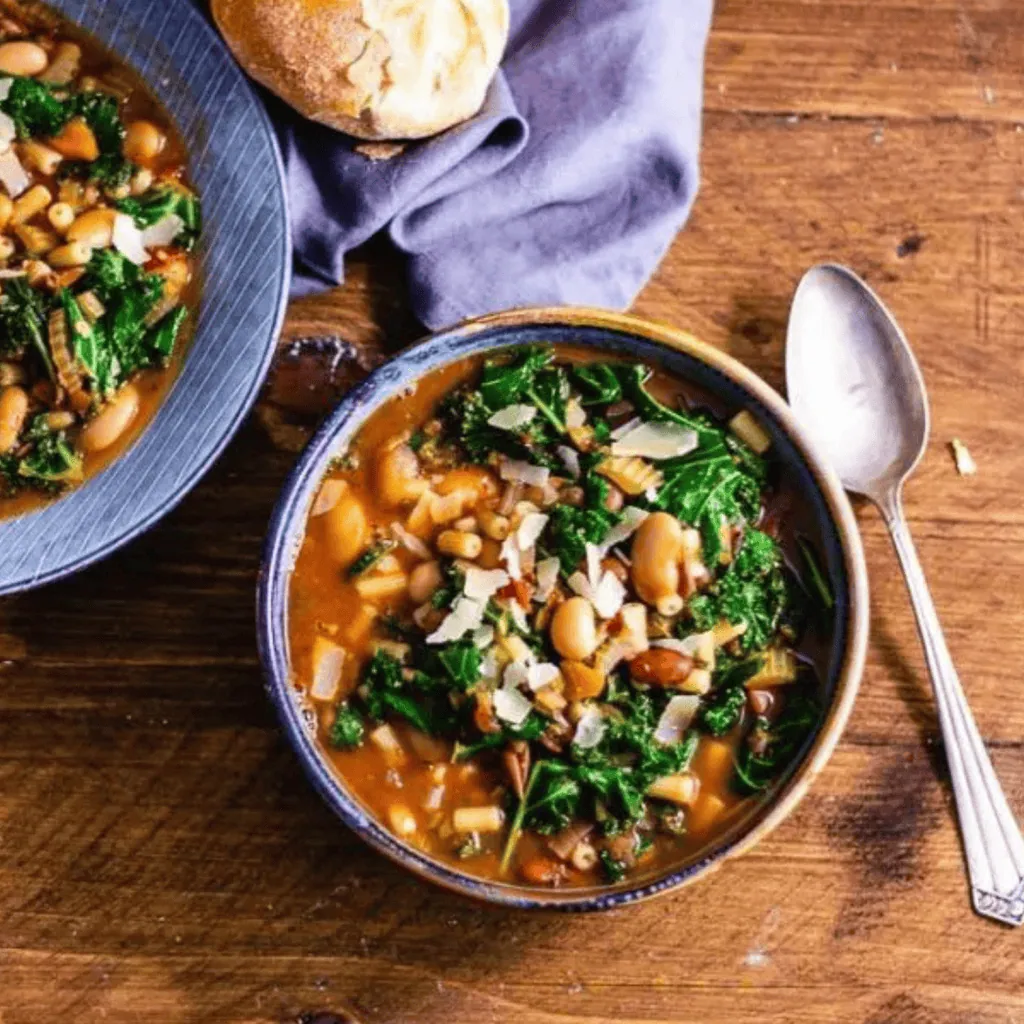 Das Beste daran? Der Bohneneintopf ist von Natur aus vegan, kommt also komplett ohne tierische Produkte aus (solange du beim Topping aufpasst). Er ist die etwas schnellere, pasta-lastige Schwester der klassischen toskanischen Ribollita (die traditionell mit Brot gebunden wird) und für mich der Beweis, dass die einfache Küche oft die beste ist.