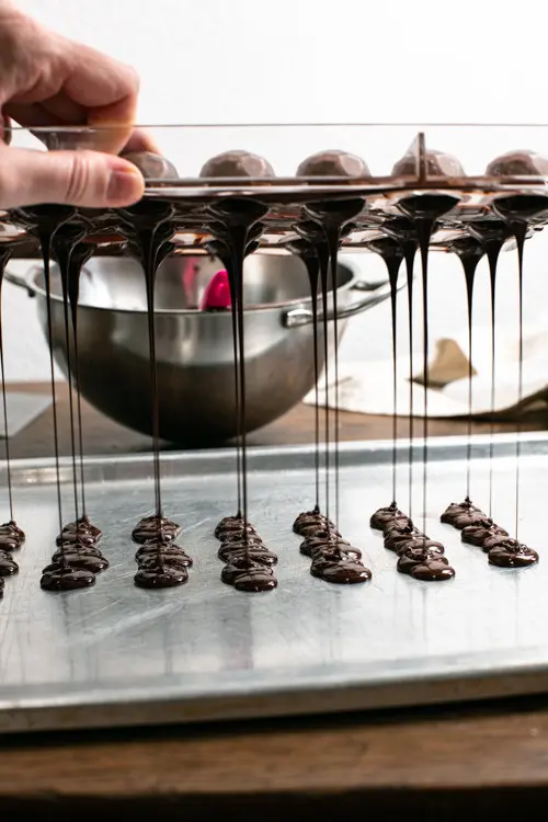 Theoretisch sind die Himbeer Pralinen jetzt bereits fertig.