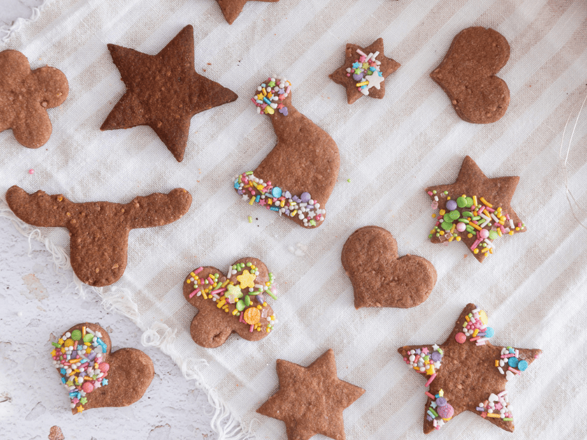 Diese Plätzchen sind die schokoladige Antwort auf Butterplätzchen! Vor allem, wenn du Plätzchen mit Kindern bäckst, gibt es keine größere Freude, als gemeinsam die Plätzchen auszustechen und später zusammen mit Zuckerguss und Streuseln zu dekorieren.
