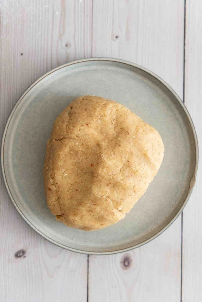 - Kühlen: Forme den Teig zu einem ziegelähnlichen Block und decke ihn ab, denn jetzt geht’s ab in den Kühlschrank. Ich kühle ihn am liebsten über Nacht. Die rechteckige Form hilft dabei, dass der Teig gleichmäßiger kühlt, und gleichzeitig kannst du ihn später wesentlich leichter ausrollen.