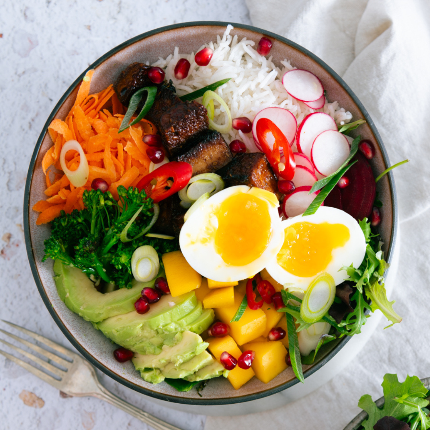 Sommer Bowl mit Erdnuss Limetten Dressing