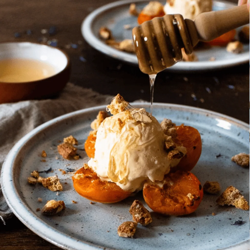 Gegrillte Aprikosen mit Vanilleeis & Cantuccini