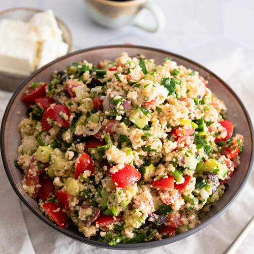Die beiden Salate sind quasi Cousins! Der Hauptunterschied liegt in der Basis: Dieser Salat hier verwendet super schnell zubereiteten Couscous aus Hartweizengrieß. Mein orientalischer Bulgursalat verwendet Bulgur (gebrochenen Weizen), der eine etwas festere, zähere Textur hat und näher am klassischen Tabouleh ist. Außerdem liegt der Fokus beim Bulgursalat noch stärker auf den frischen Kräutern, insbesondere der Minze. Dieser Couscous-Salat ist meine schnelle ‚Alltagsversion‘, wenn es unkompliziert und lecker sein soll!