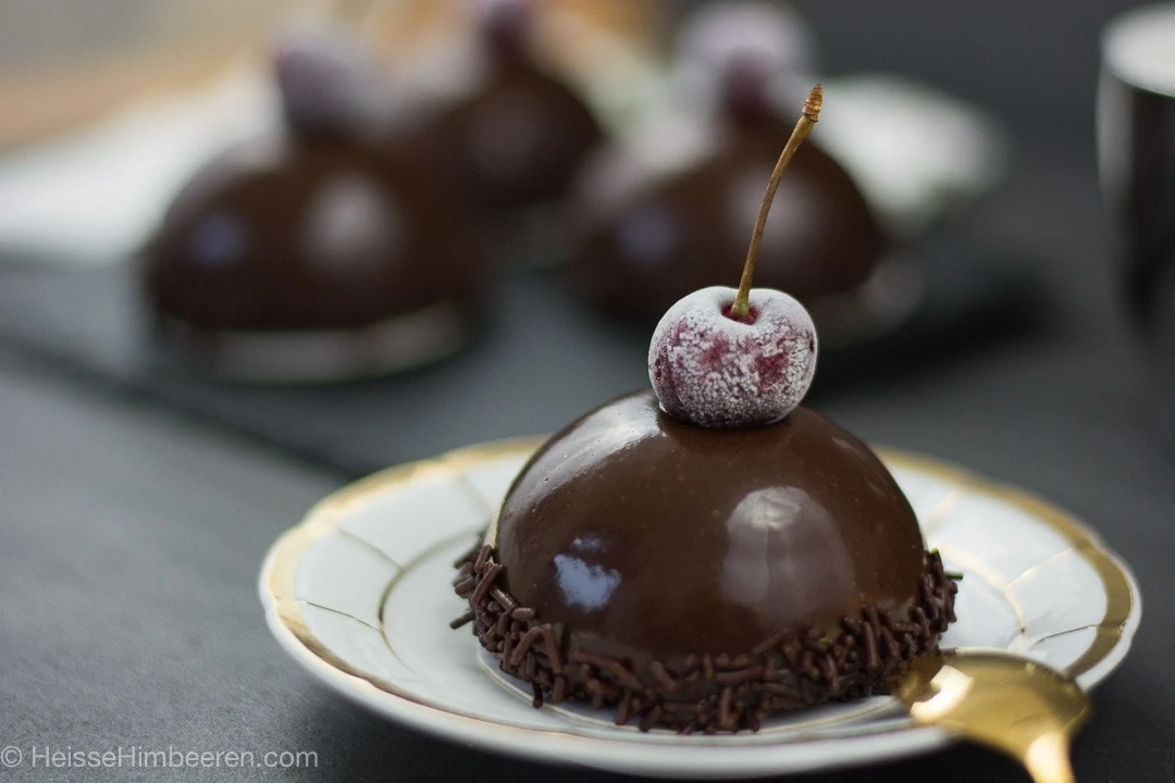 Mirror Glaze Törtchen mit Schokomousse & Kirschen