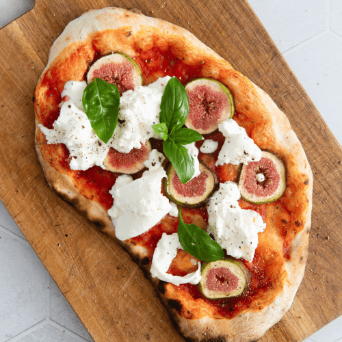 Im vorgeheizten Backofen für ca. 5 Minuten knusprig backen bis der Käse geschmolzen ist und der Rand goldbraun geworden ist. Aus dem Backofen holen und direkt servieren. So mit allen weiteren Teig Portionen verfahren und ganz nach Geschmack belegen.