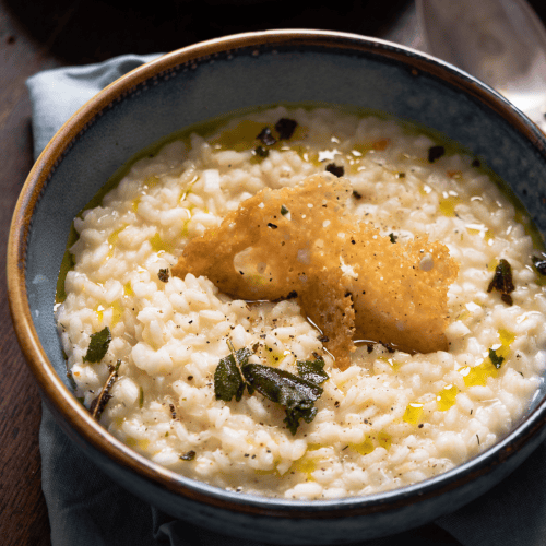 Carnaroli oder Arborio Reis sind die beiden bekanntesten und beliebtesten Risotto Reissorten.Risotto lässt sich nicht aufwärmen. Es sollte direkt frisch serviert werden. Aus kaltem Risotto kannst Du Arancini zubereiten, kleine, frittierte Reisbällchen die mit Tomatensauce als Dip serviert werden.