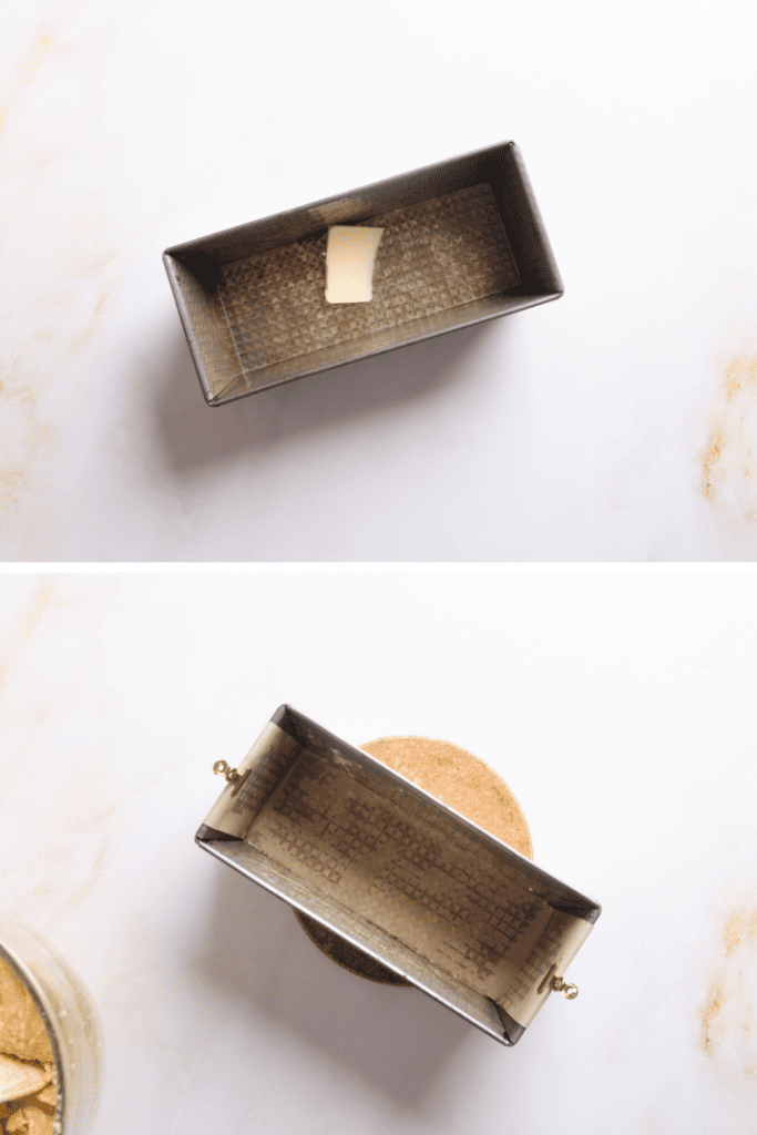 Backofen auf 170 °C Unter- und Oberhitze vorheizen. Eine Kastenform mit Butter ausstreichen und Backpapier auslegen.