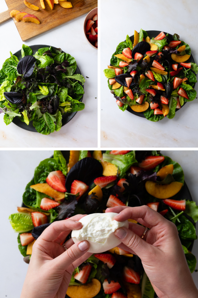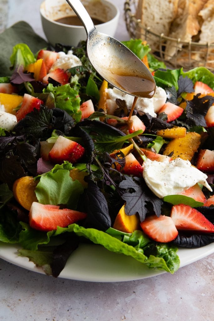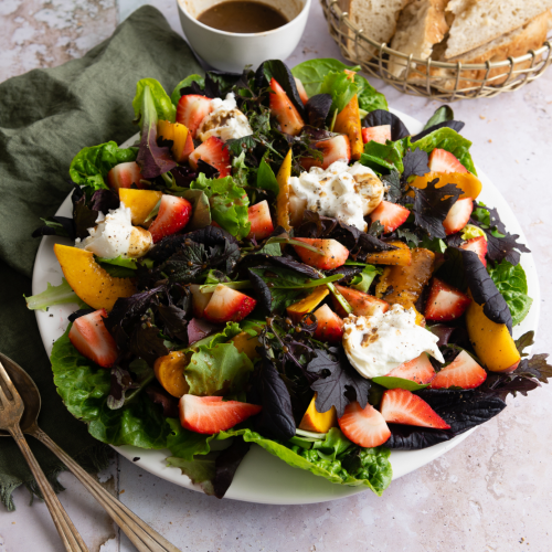 Bunter Sommersalat mit Erdbeeren, Nektarinen und Burrata