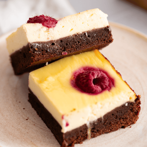 Super saftige Cheesecake Brownies mit Himbeeren. Schnell gemacht und die perfekte Kombination aus süß-herben Brownies und cremigem Cheesecake mit fruchtigen Himbeeren.