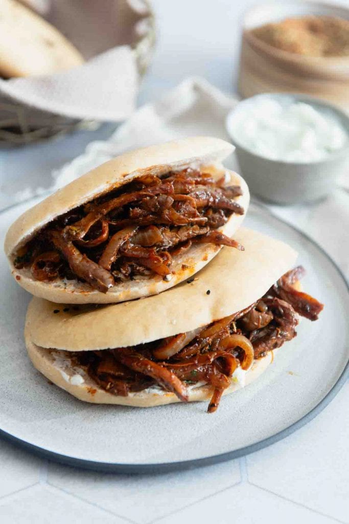 Lass die Dönerbrote abkühlen und serviere sie nach Herzenslust klassisch gefüllt oder als Beilage zu einem Gyrosteller.