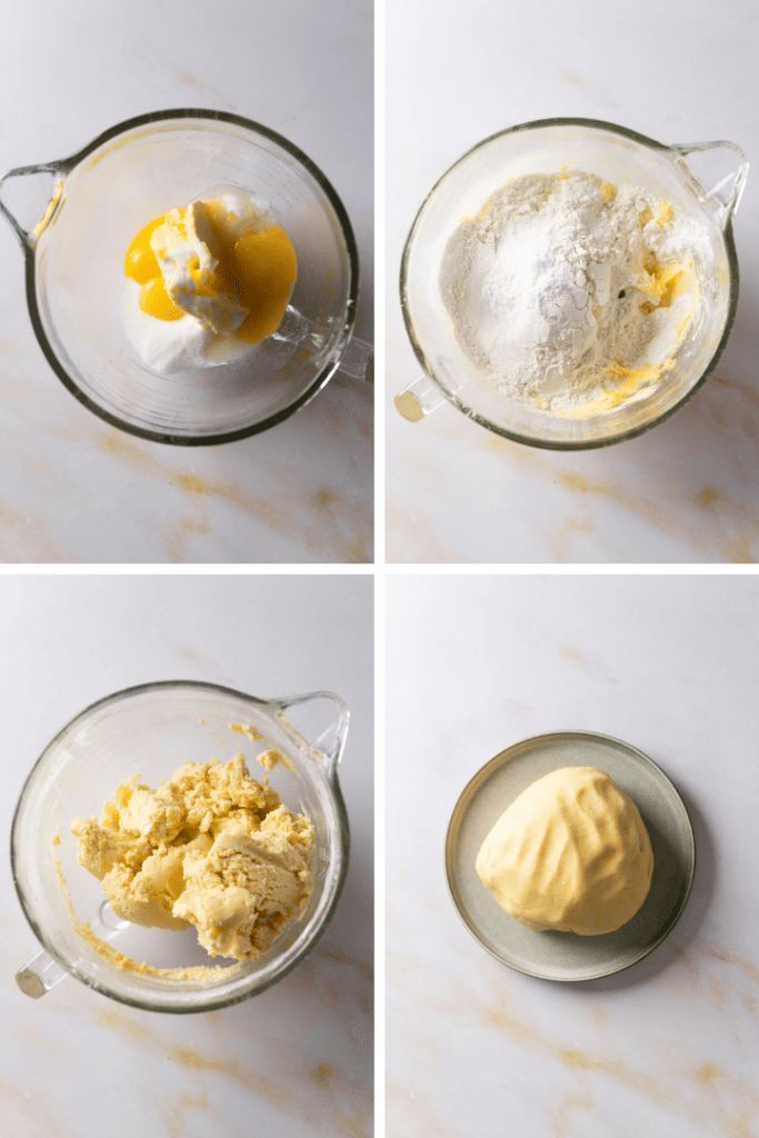 Butter, Zucker, Vanilleextrakt und Salz in eine Rührschüssel geben. Kurz cremig rühren, dann die Eier dazugeben. Siebe die trockenen Zutaten dazu und vermenge alles zu einem glatten Teig. Formen den Teig zu einer Kugel, wickle ihn gründlich ein und kühle ihn für mindestens 1 Stunde, besser über Nacht im Kühlschrank.