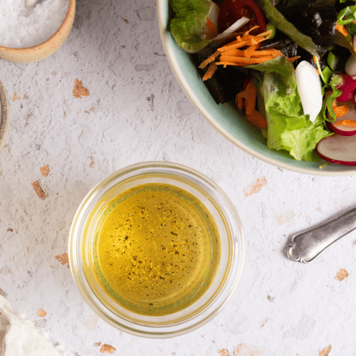 Einfaches Rezept für Essig-Öl-Dressing wie bei Oma. Dieser Klassiker ist immer die richtige Wahl, wenn du nach einem unkomplizierten Salatdressing suchst, das einfach immer passt.