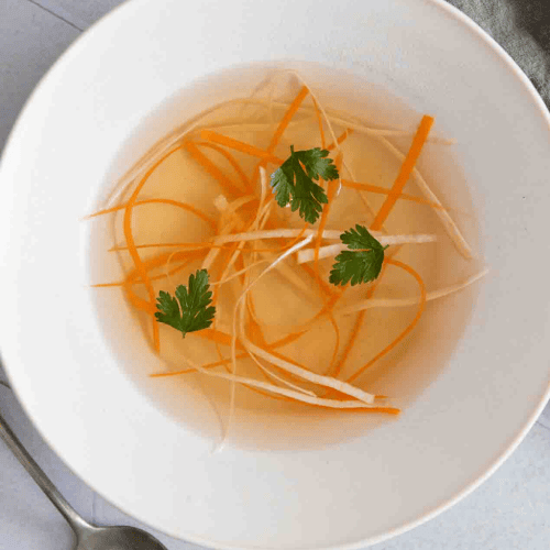 Die Gemüsebrühe lässt sich hervorragend einfrieren. Sie kann auch mit Hilfe einer Eiwsürfelform portiniert werden. Als Gemüse eignet sich alles, was in der Küche anfällt. Mit dabei sein sollten allerdings Karotten, Sellerie und Zwiebeln bzw. Lauch.