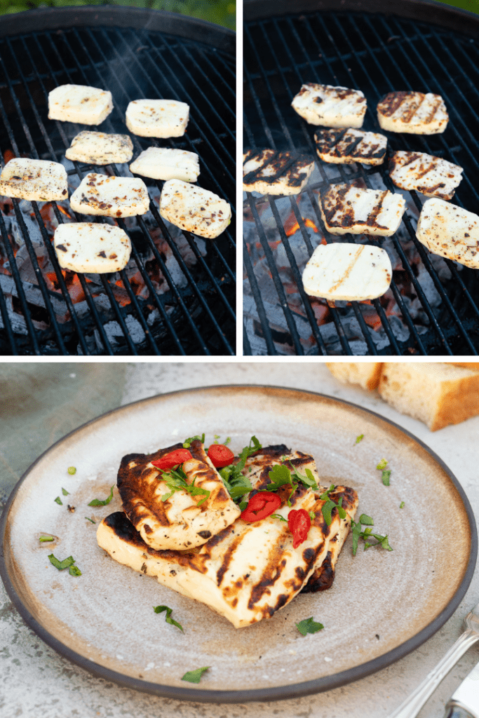 Grille den Halloumi auf dem heißen Grill. Wenn er fertig ist, lässt er sich problemlos wenden.