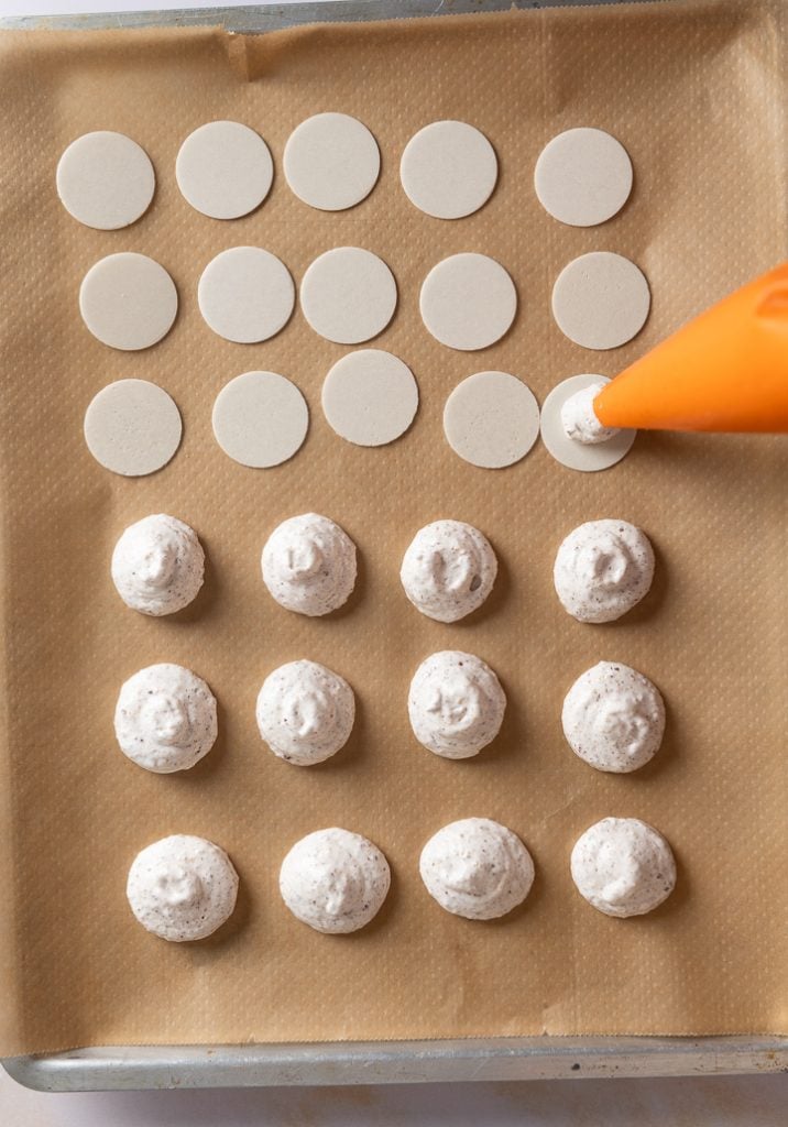 Heize den Backofen auf 170 °C Ober- und Unterhitze vor und bereite einen Spritzbeutel mit großer Lochtülle vor. Belege einige Backbleche mit Backpapier.