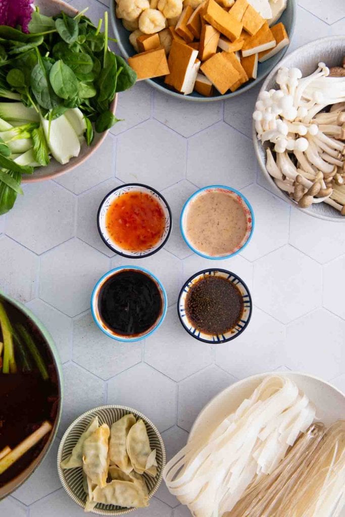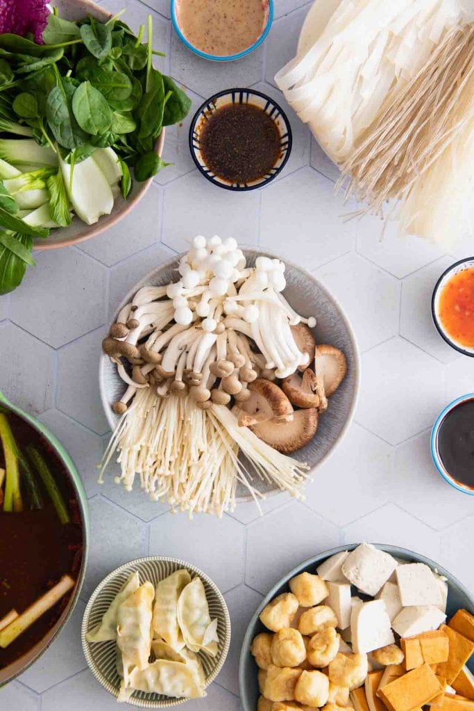 Leckeres Hotpot Rezept für chinesischen Feuertopf. Vegetarisch mit zwei verschiedenen Brühen und den leckersten Zutaten ist das asiatische Fondue ganz einfach selbst gemacht.