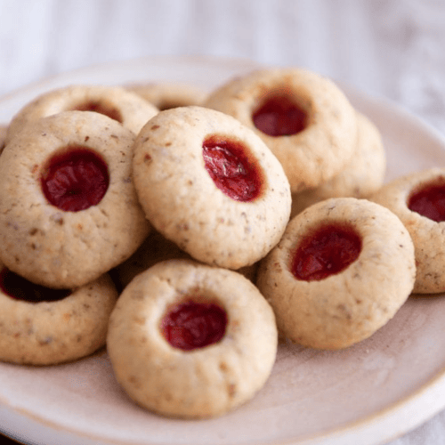 Wer mag, kann die Plätzchen anstelle von Johannisbeergelee auch mit Quittengelee oder Brombeermarmelade füllen.