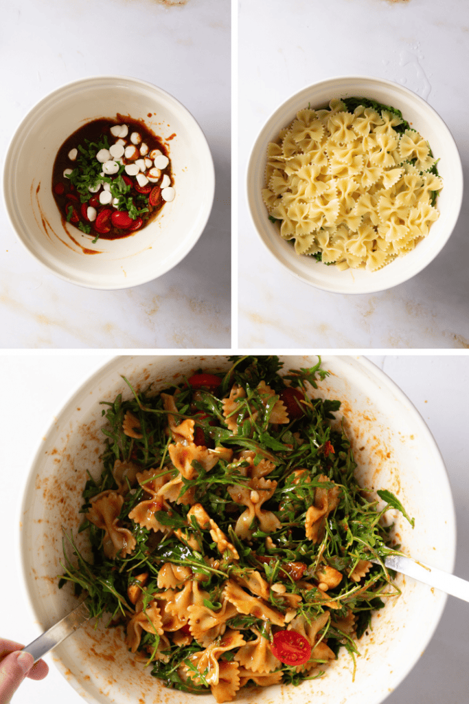 Schnelles Rezept für italienischen Nudelsalat mit Rucola & getrockneten Tomaten. Die Zubereitung dauert nur 20 Minuten, schon ist der leckerste Nudelsalat fertig.