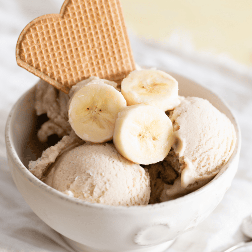Schnelles Rezept für cremiges, italienisches Bananeneis. Du brauchst nur 4 Zutaten und kannst dieses leckere Eis mit und ohne Eismaschine ganz einfach selber machen.