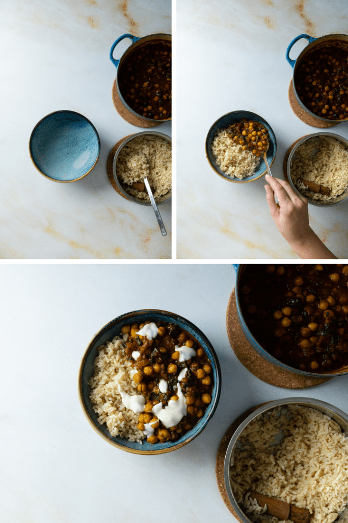 Mit frisch gekochtem Reis und ggf. etwas Joghurt oder Raita servieren.