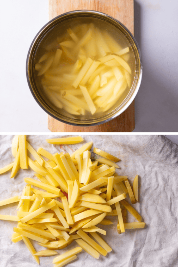 Pommes im kaltes Wasser legen und gründlich abwaschen. Anschließend trocknen.