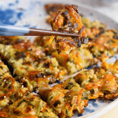 Am besten bereitest du die koreanischen Pancakes frisch zu. Zum Vorbereiten eignen sie sich nur bedingt gut. Du kannst jedoch das Gemüse bereits Stunden vorher schneiden und luftdicht verpackt im Kühlschrank lagern. Die Dipsauce hält sich im Kühlschrank sogar mehrere Tage.