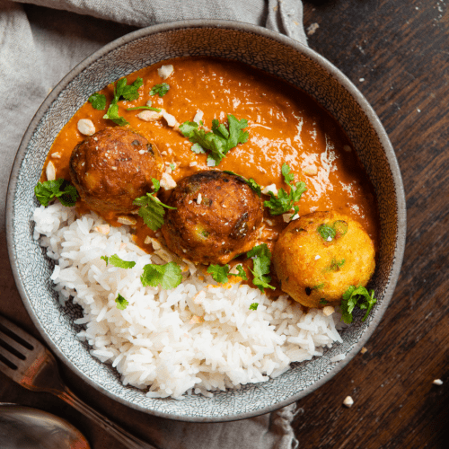 Leckeres Rezept für Malai Kofta. Die indischen Gemüsebällchen mit würziger Tomatensoße sind echtes Soulfood und können ganz einfach selbst zubereitet werden.