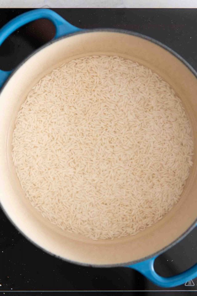 Wasche den Klebreis sehr gründlich ab, bis das Wasser klar ist. Das kann 4–5 Waschgänge in Anspruch nehmen. Fülle den Reis dann zusammen mit dem Wasser in einen passenden Topf. Bringe den Reis zum Kochen, reduziere dann die Hitze und gare den Klebreis bei geschlossenem Deckel ca. 15-20 Minuten (je nach Packungsangabe).