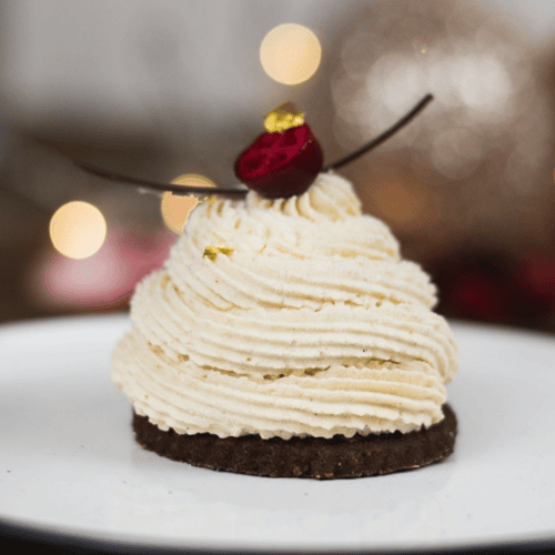 Bei einem Weihnachtsmenü darf die Nachspeise nicht fehlen. Die leckeren Maronen Mousse Törtchen komplettieren das perfekte Weihnachtsmenü rund um die Marone.
