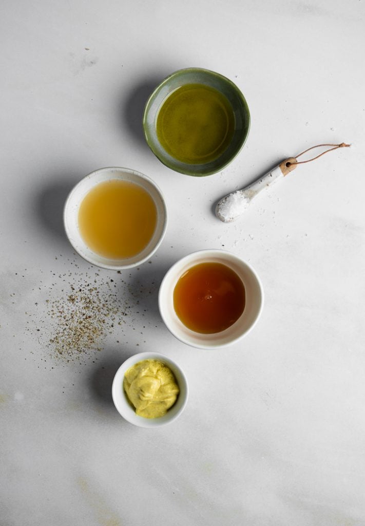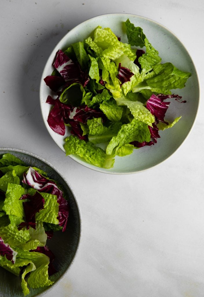 Für das Dressing alle Zutaten in ein sauberes Marmeladenglas oder eine kleine Schüssel geben und gut schütteln bzw. kräftig verrühren. Dressing über den beiden Salaten verteilen und Salat direkt servieren.