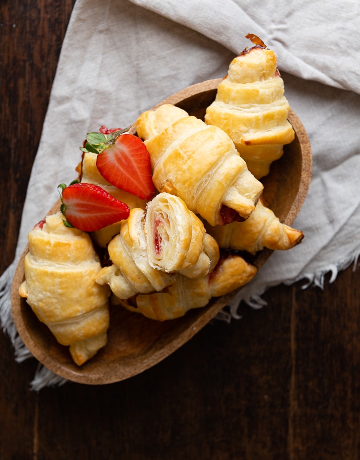 Fruchtige Croissants aus Blätterteig mit saftiger Erdbeer-Füllung kannst du mit diesem Rezept in nur 5 Minuten zu Hause zubereiten. Perfekt für den nächsten Brunch oder ein süßes Picknick.