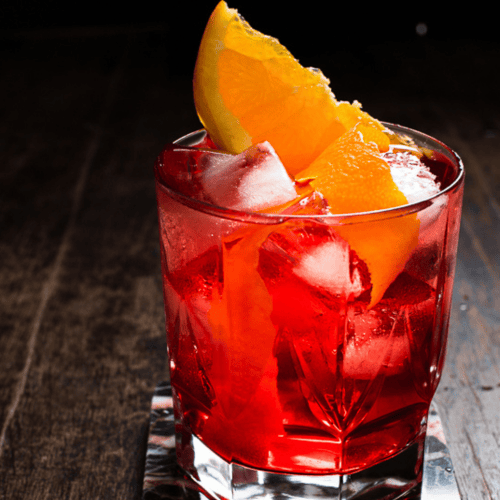 Der Negroni kann auch vorbereitet werden. Dafür einfach Campari, Wermut und Gin in einem Krug oder einer Flasche mischen. Zum Servieren in ein mit Eiswürfeln gefülltes Glas geben. Mit Orangenzeste garnieren.