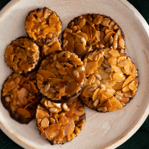 Omas Florentiner Rezept darf zu Weihnachten nicht fehlen. Mit diesem Rezept aus Omas Rezeptbuch kannst du aus nur 7 Zutaten knusprige, aromatische Florentiner backen. Die schmecken herrlich nach Karamell und gebrannten Mandeln und dürfen zu Weihnachten auf keinem Plätzchenteller fehlen.