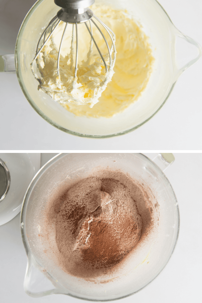 Rühre Butter, Puderzucker Vanilleextrakt und Salz mit dem Handrührgerät ca. 5 Minuten hell und cremig. Den Puderzucker solltest du ggf. vorher sieben, damit er Klümpchenfrei ist. Gib dann Mehl, Backkakao und die Haselnüsse dazu und verrühre die Zutaten zu einem glatten Teig.