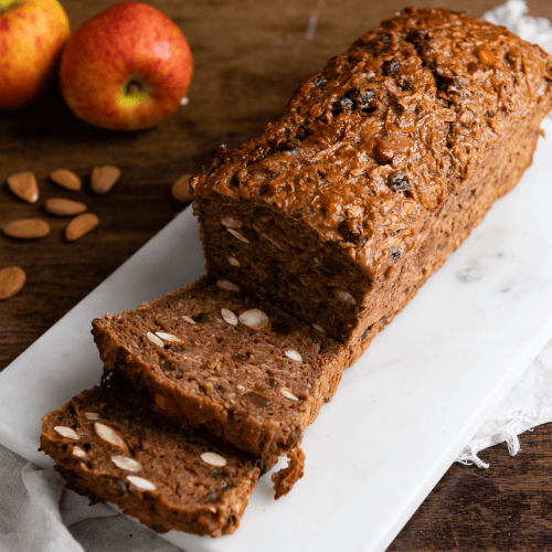 Du kannst das Apfelbrot auch ohne Weiteres einfrieren. Es hält im Eisfach mehrere Monate.