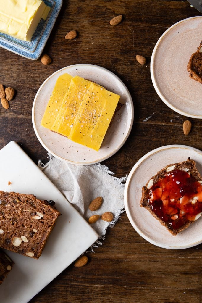 Zum Servieren kannst Du das Apfelbrot auch toasten.