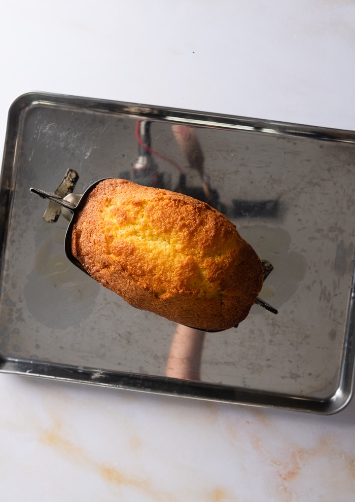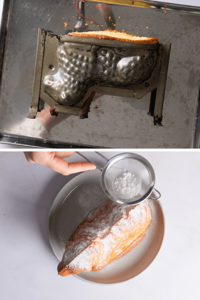 Backe das Osterlamm nun im vorgeheizten Backofen bei 170 °C für 45 bis 60 Minuten. Mache die Stäbchenprobe an Kopf und Rücken. Wenn das Stäbchen sauber ist, nimm das Osterlamm aus dem Ofen und lass es in der Form für 1 Stunde abkühlen.