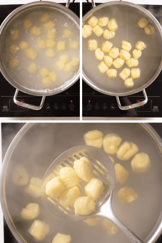 Gare die Gnocchi in köchelndem Salzwasser. Sie sind gar, wenn sie oben schwimmen. Serviere die Gnocchi dann nach Herzenslust.