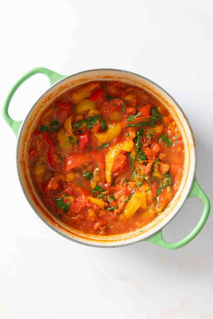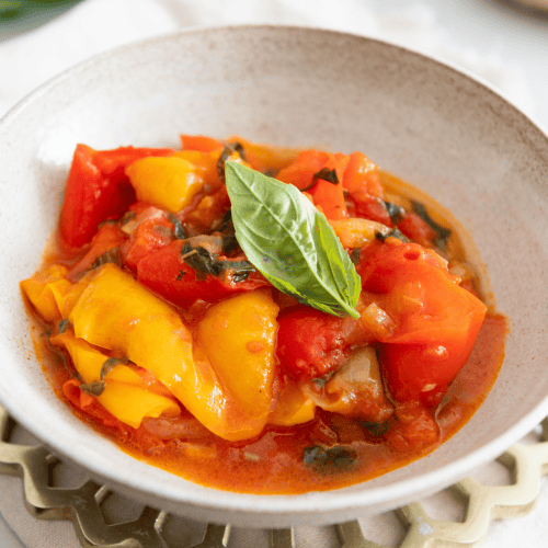 Original italienisches Peperonata Rezept. Das italienische Paprikagemüse schmeckt herrlich nach Urlaub und ist aus wenigen Zutaten im Handumdrehen zubereitet.