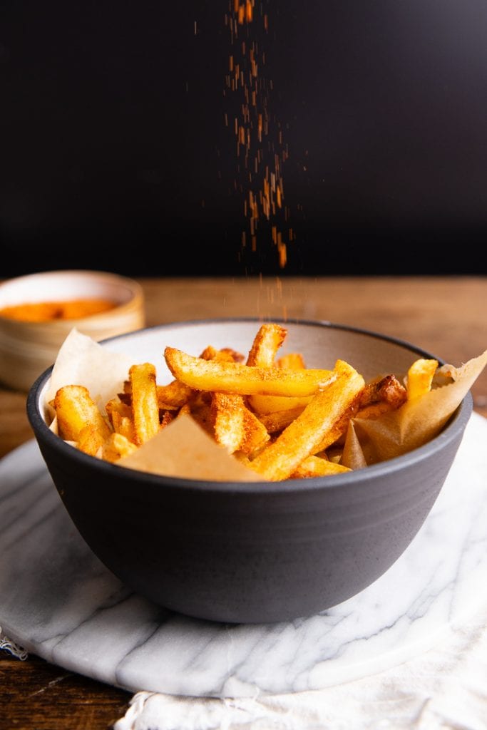 Schnelles Rezept zum Pommesgewürz selber machen wie im Imbiss. Du brauchst nur 5 Zutaten und zwei Minuten für das leckerste, selbst gemachte Pommesgewürz.