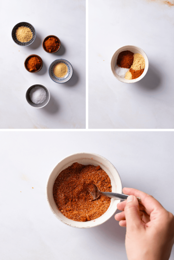 Vermenge alle Zutaten für das Pommesgewürz gründlich in einer Schüssel.