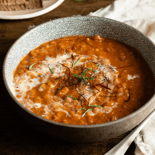 Schnelles Rezept für rote Linsensuppe mit Kokosmilch. Würzig lecker mit Garam Masala ist diese cremige Suppe perfekt für kalte Tage und kann sehr gut vorbereitet werden.