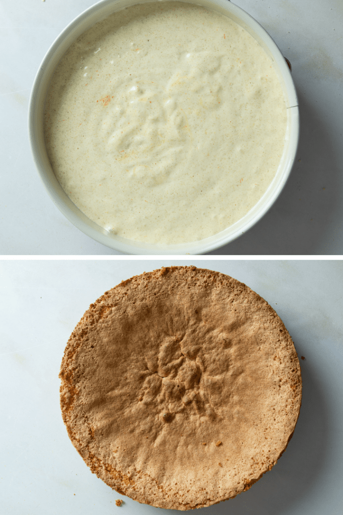 Teig in die vorbereitete Backform füllen und sofort im vorgeheizten Backofen bei 170 °C Ober- und Unterhitze für etwa 45 Minuten backen. Der Kuchen sollte goldbraun sein. Mit der Stäbchenprobe den Garpunkt prüfen.