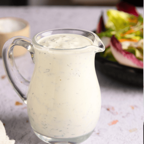 Schnelles Salatdressing Sylter Art original mit Joghurt, Dill und Zwiebeln. Dieser Klassiker passt zu allen Blattsalaten und du kannst das Dressing für die ganze Woche im Voraus zubereiten.