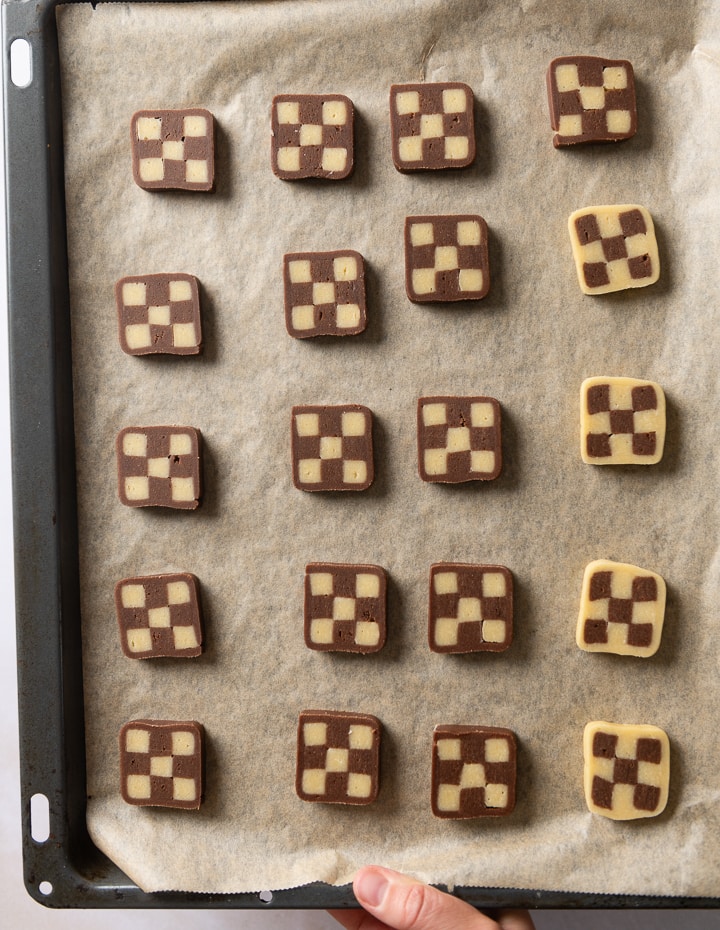 Schwarz-Weiß-Gebäck mit Schachbrettmuster