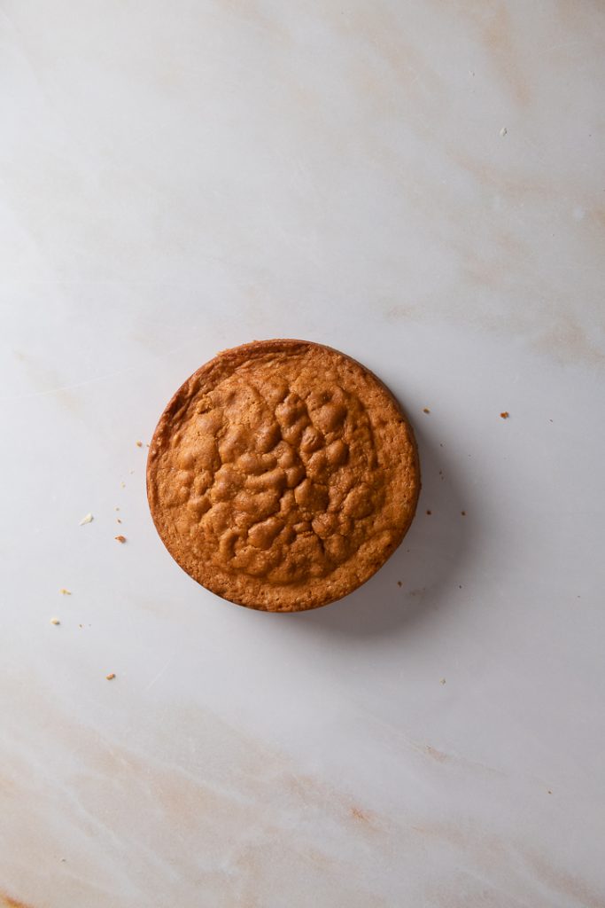 Von beiden Kuchenböden die Backkuppel abschneiden. Die Böden dann waagerecht halbieren. Das funktioniert am besten mit einem langen, gezackten Messer oder einem Tortenboden-Schneider.