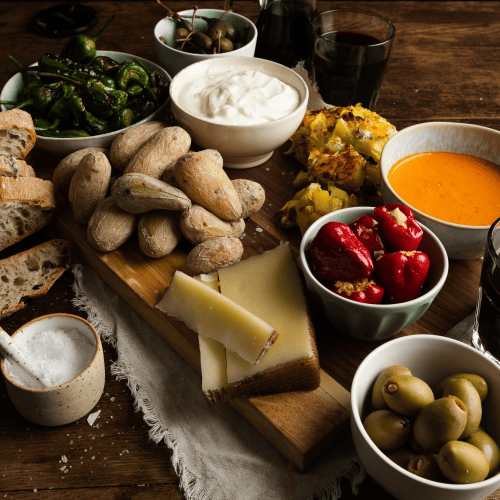 Rezept für vegetarische Tapas. Du brauchst nur 11 Zutaten, um eine Tapasplatte mit 10 leckeren spanischen Tapas zuzubereiten. Von spanischer Tortilla und Aioli über Papas Arrugadas und Mojo Rojo, die typisch für die Kanarischen Inseln sind, ist für jeden Geschmack etwas dabei. Das Beste ist, du kannst die Tapas problemlos vorbereiten.