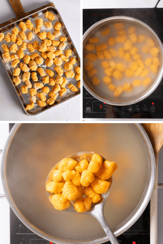 Gare die Gnocchi in kochendem Salzwasser, bis sie oben schwimmen, und nimm sie dann mit Hilfe eines Schaumlöffels aus dem Wasser.Die Süßkartoffel Gnocchi kannst du nun abgedeckt für 2-3 Tage im Kühlschrank lagern oder bis zu 3 Monate einfrieren. Natürlich kannst du sie auch direkt frisch servieren.
